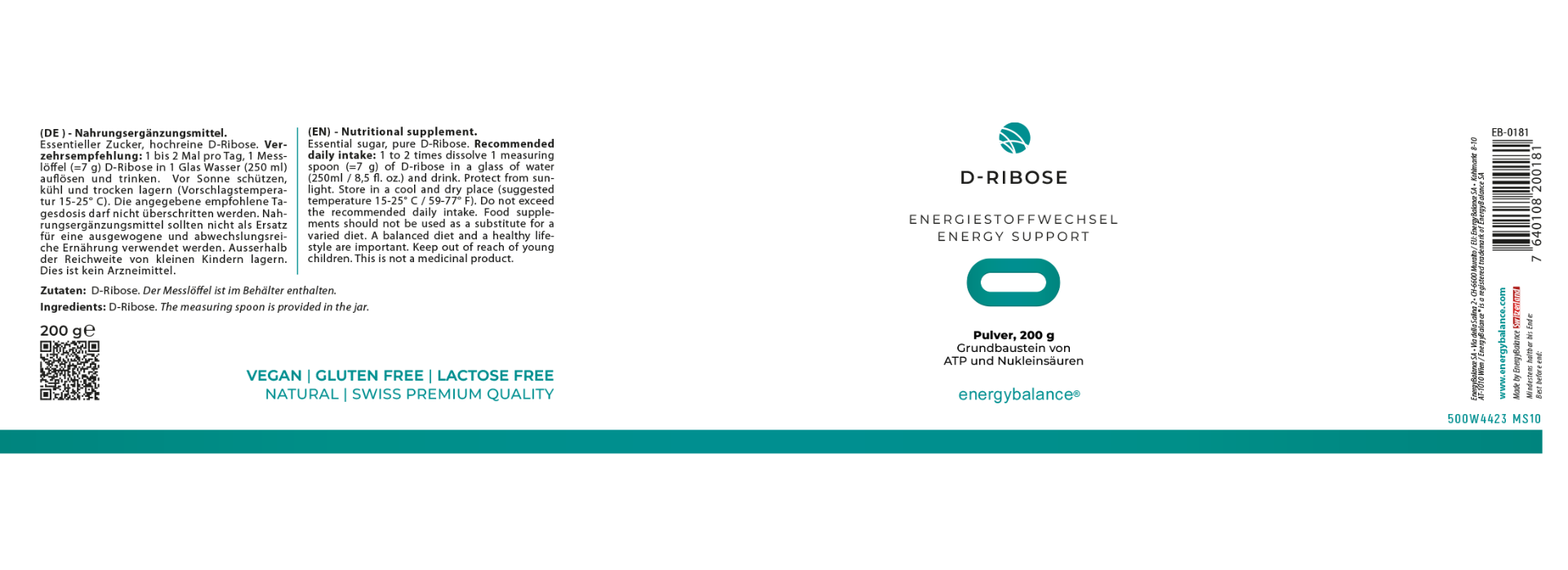 D-Ribosio – Zucchero naturale, parte essenziale dell’ATP e degli acidi nucleici - Maggiore energia, maggiore durata
