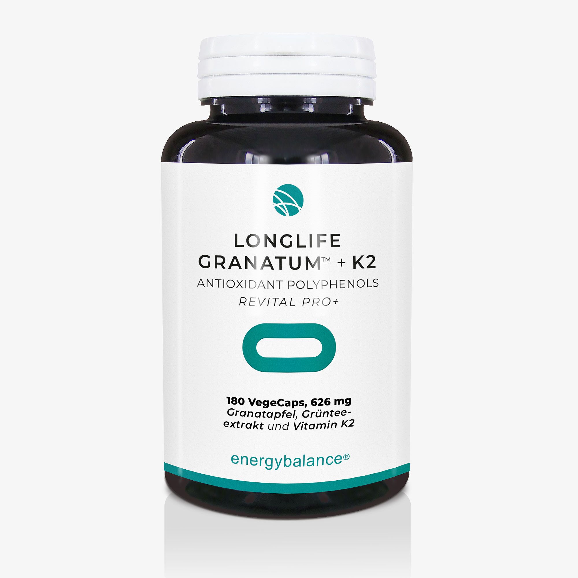 Longlife Granatum ist ein antioxidatives Nahrungsergänzungsmittel mit Granatapfelextrakt und mikroverkapseltem Vitamin K2, angereichert mit Polyphenolen aus grünem Tee. Es wurde speziell für das männliche Wohlbefinden ab 50 Jahren entwickelt. Jede Kapsel enthält 253 mg aktive Polyphenole aus ausgewählten pflanzlichen Quellen.